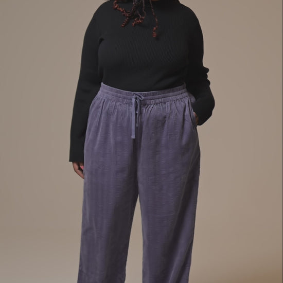 Norris - Wide Leg Corduroy Trousers in Blueberry Mist