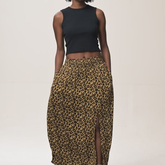 Poppy - Elasticated Waist Skirt in Leopard Print