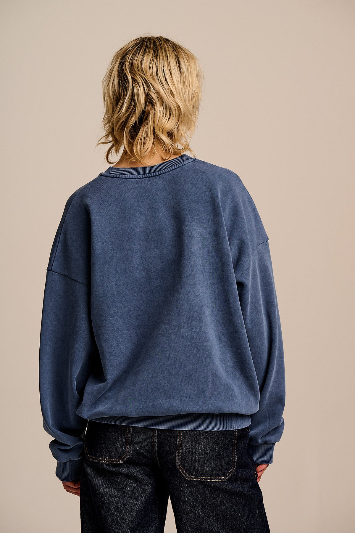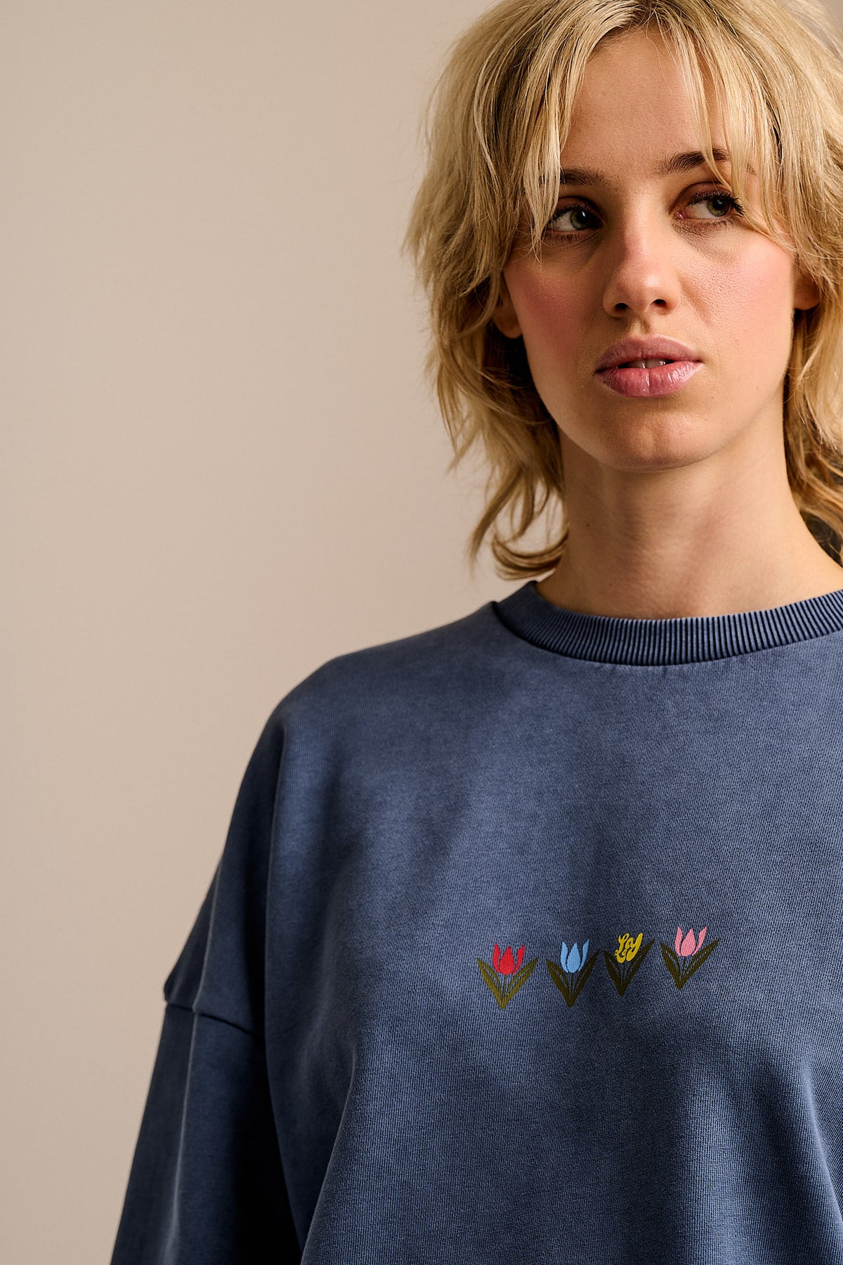 Sutton - Cotton Jersey Oversized Sweatshirt in Washed Navy Tulip Print