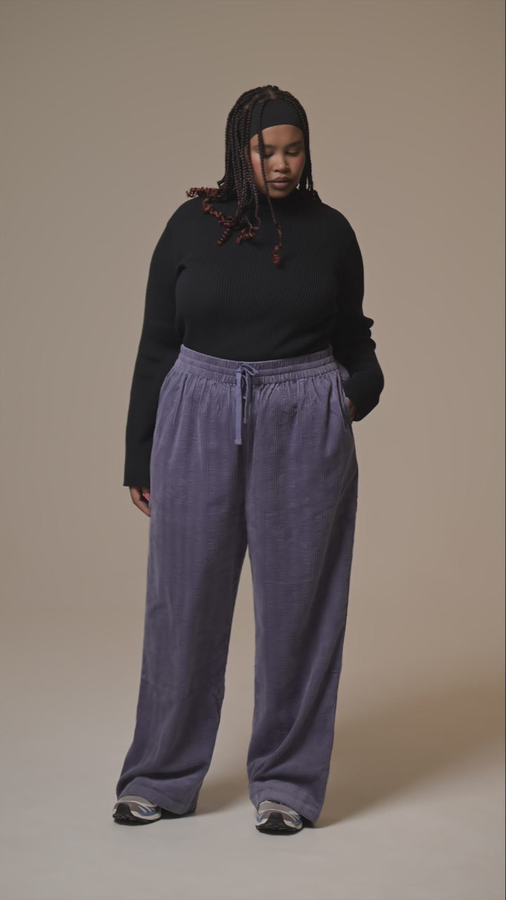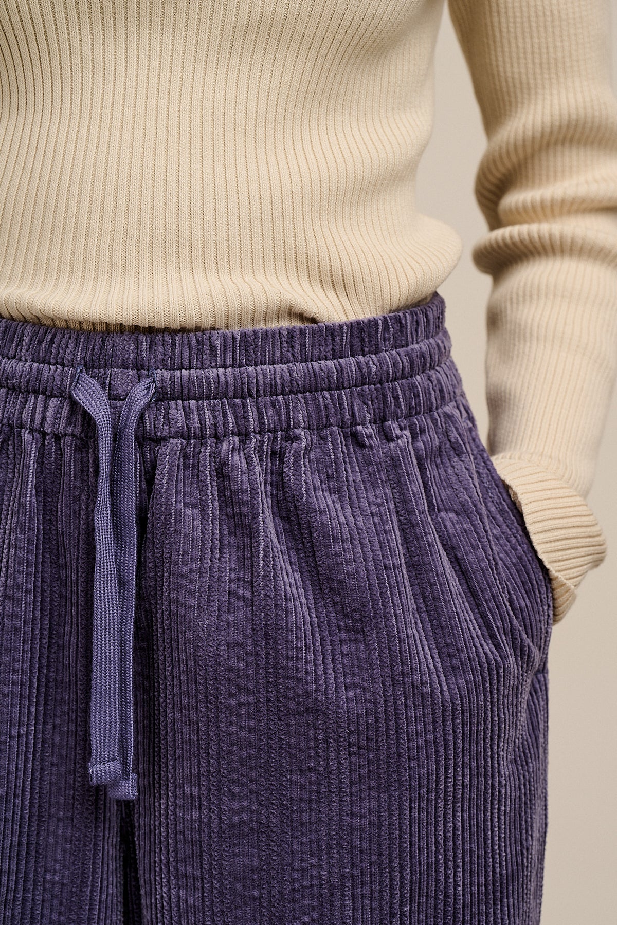 Norris - Wide Leg Corduroy Trousers in Blueberry Mist