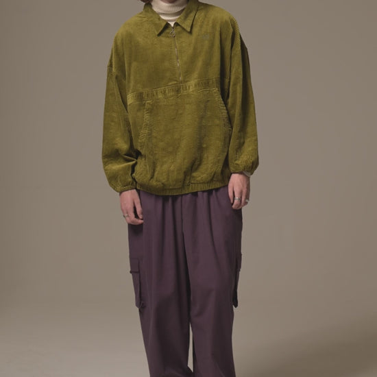 Rumi - Brushed Cotton Barrel Trousers in Plum Perfect