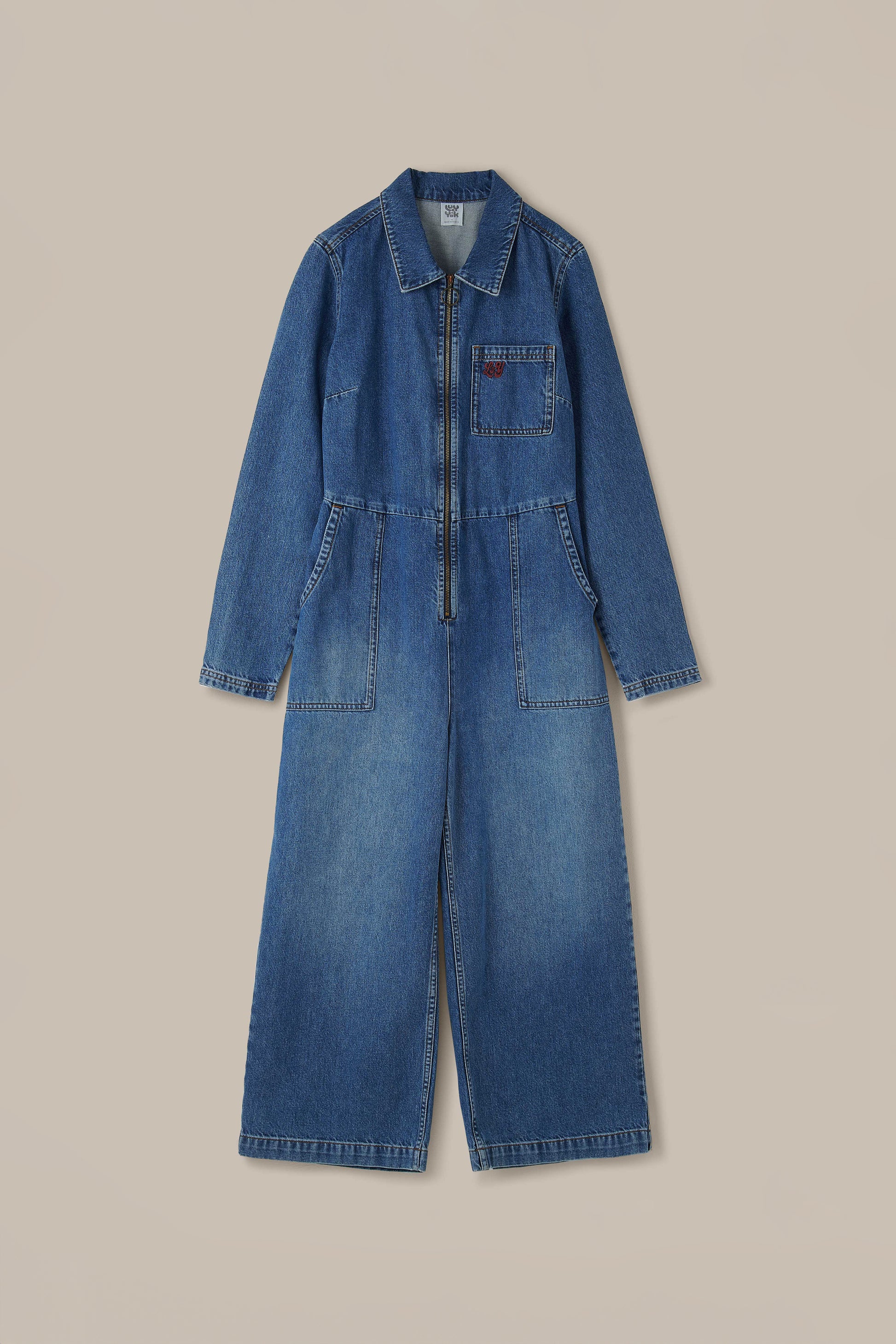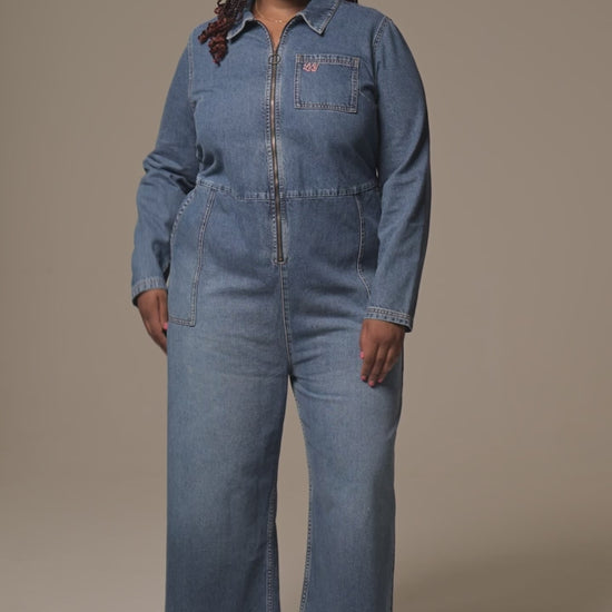 Tavira - Denim Long Sleeve Jumpsuit in Vintage Wash