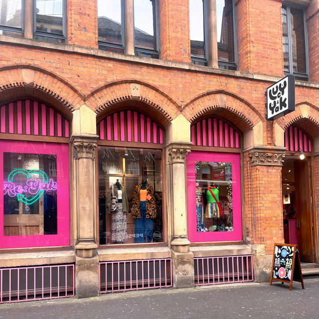 Our little pink shop on the high street is your destination for cosy pieces, all made with sustainable, organic materials. We're near the historic Manchester Cathedral, Manchester Art Gallery, and Piccadilly Marina.