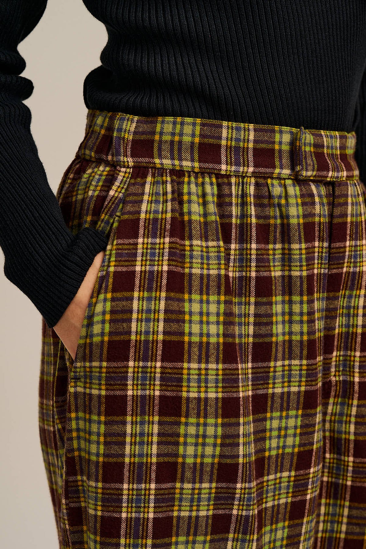 Beau - Barrel Leg Brushed Cotton Trousers in Winter Tartan