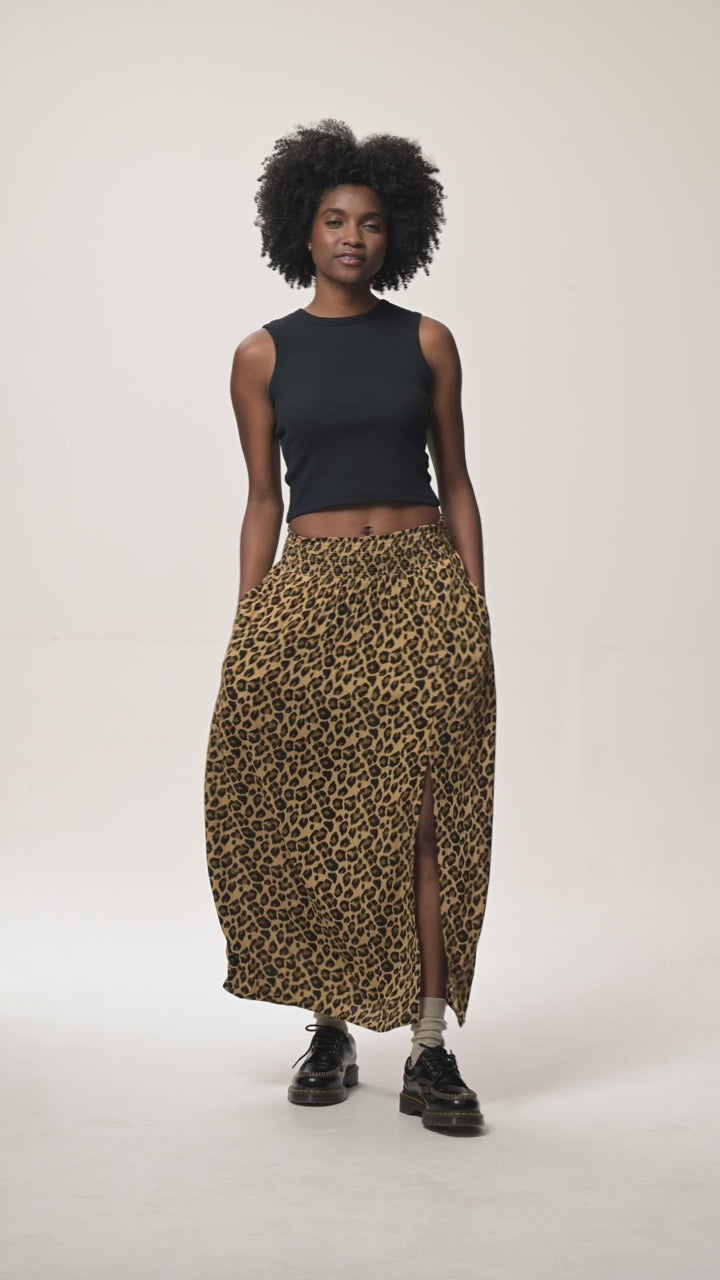 Poppy - Elasticated Waist Skirt in Leopard Print
